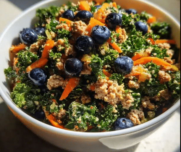 this specific recipe so great? Well, let me tell you! This Raw Chicken & Spinach Dog Food Bowl isn’t just another dog food recipe; it’s a little bowl of pure awesomeness designed with YOUR busy life and YOUR dog’s health in mind. It’s the perfect blend of simplicity and nutrition that makes feeding time a joy, not a chore. GET THE RECIPE