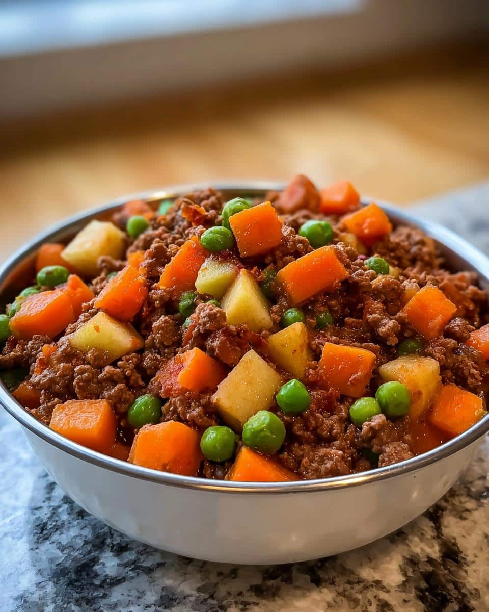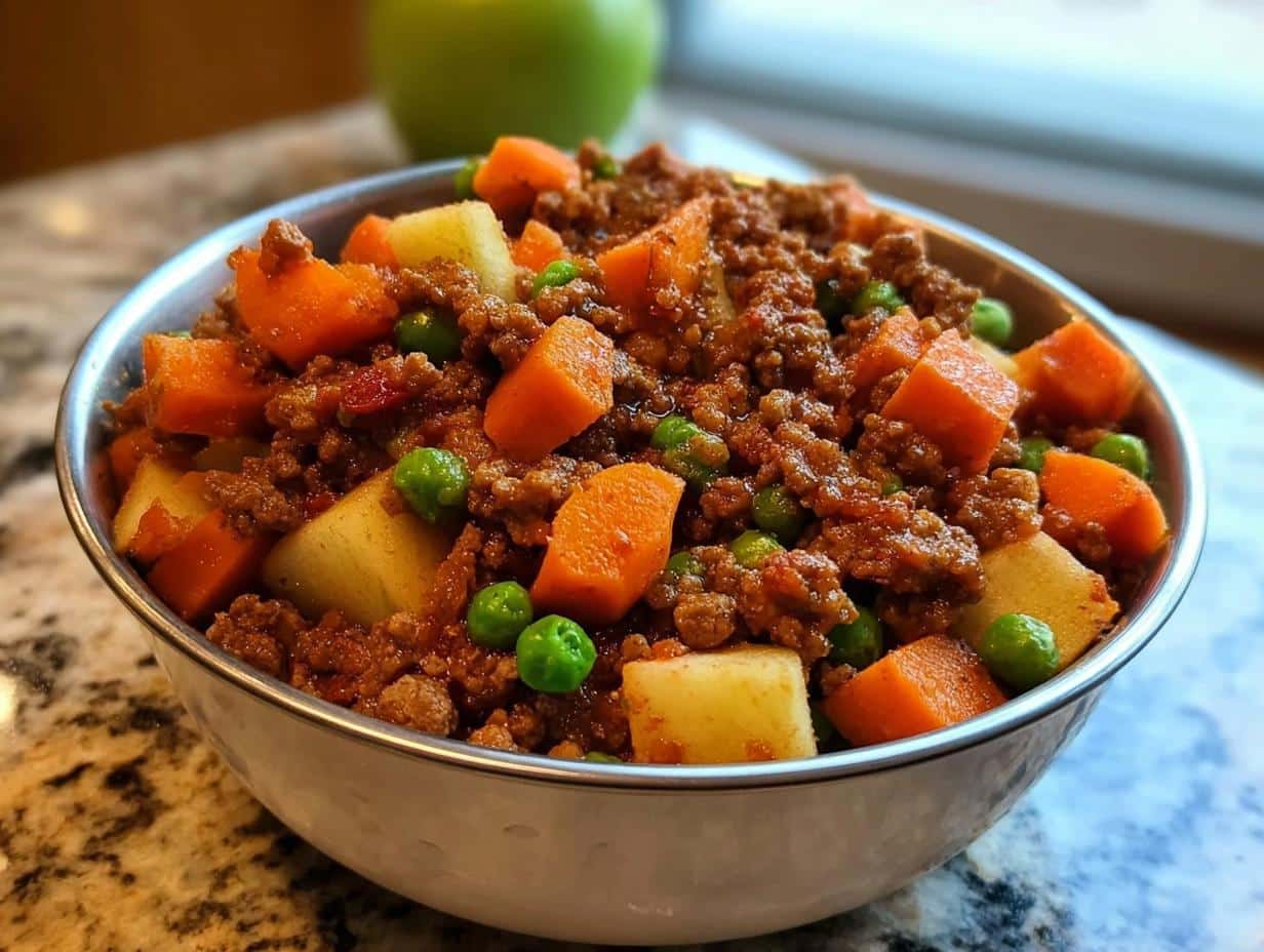 This recipe provides a nutritious homemade meal for your dog, featuring protein, fiber, and vitamins from beef, apples, and vegetables. It is simple to prepare and supports your dog’s health and digestion.