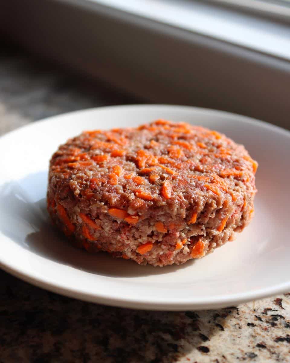 If you’re sticking to the rolled meat style instead of patties, take a peek at this neat method for beef dog food roll with carrots and oats!
