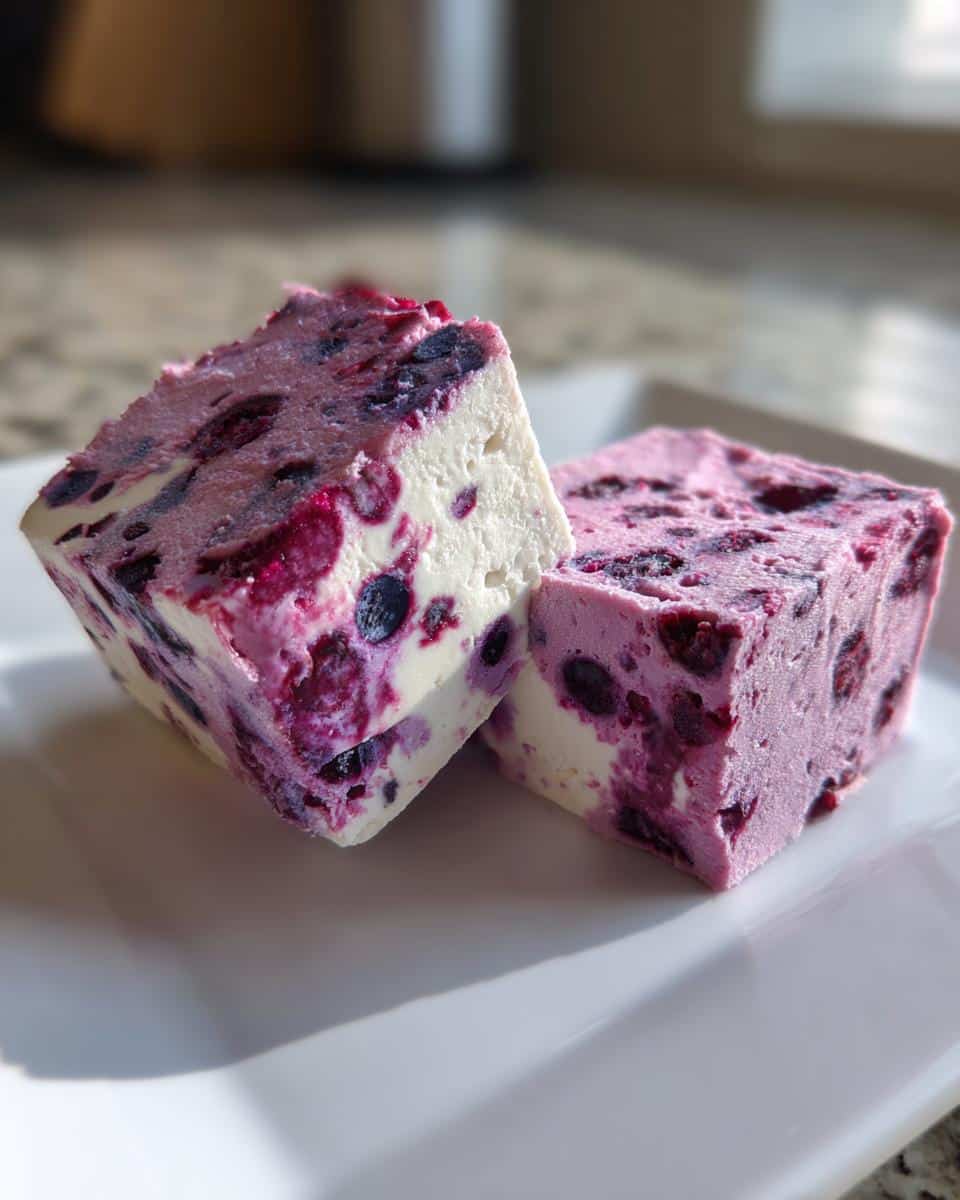 Absolutely, yes! In fact, sometimes I prefer using frozen blueberries because they are already pre-chilled, which means the entire mixture starts off colder, helping it set up a tiny bit faster in the blender, even though you still need that 4-hour freeze time. If you use frozen bananas (sliced and frozen ahead of time), it will act almost like ice cream maker in your blender, creating an even fluffier base for your cubes, though you might need to add a splash more yogurt to get the blades moving properly.