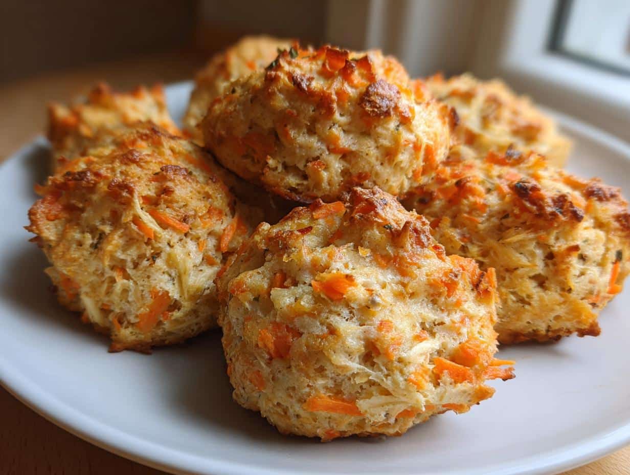 - In a mixing bowl, combine the flour, shredded chicken, and grated carrots.