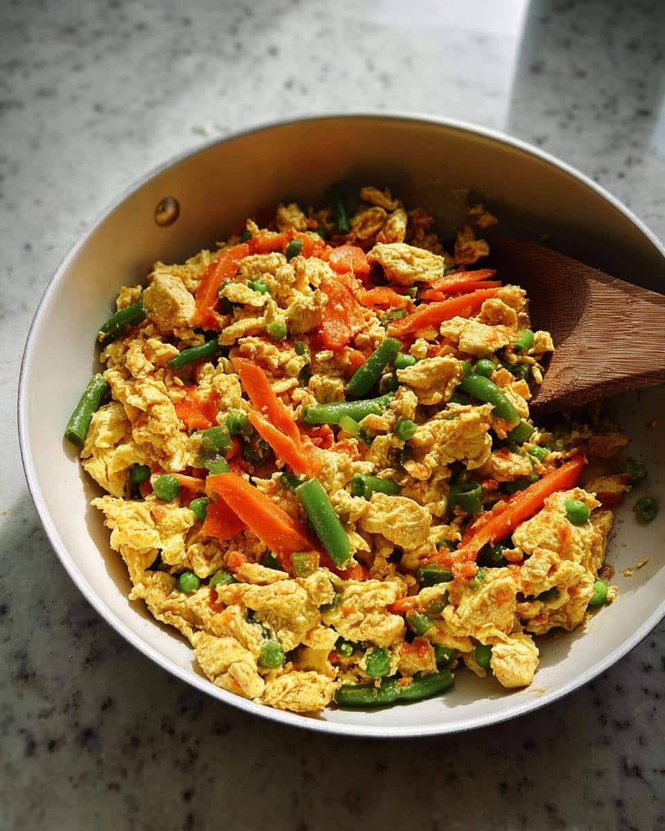 - Crack the eggs directly into the skillet, then scramble gently with a spatula until fully cooked and integrated with the other ingredients. Use low-medium heat to prevent the eggs from becoming rubbery.