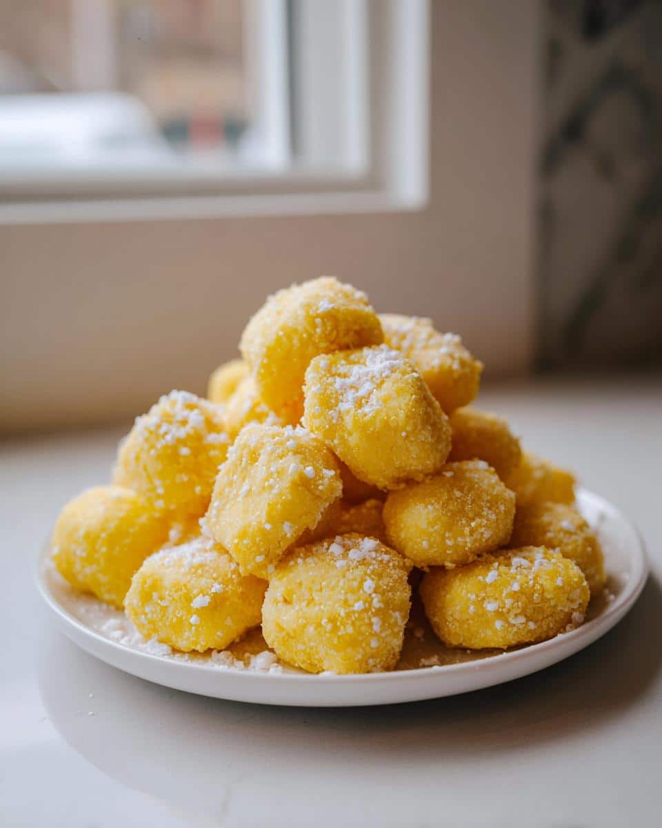 The recipe note says you can keep it for up to a week, and I agree thatโs the sweet spot. The key is the container. You absolutely must use an airtight container. If air sneaks in, that lovely powdered sugar coating turns sticky and gummy almost overnight. I use those big glass canisters with the clamp lidsโthey seal up perfectly.