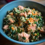 This is where the magic happens, and itโ€™s really just one big bowl party. Grab your favorite mixing bowl โ€“ I like one thatโ€™s big enough so things donโ€™t go flying! Just pop all your prepped goodies straight in: the flaked salmon, fluffy quinoa, chopped steamed spinach, mashed sweet potato, and that little drizzle of olive oil. Easy peasy!