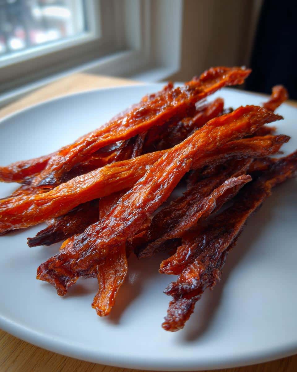 I don’t know about you, but sometimes I just need a snack that tastes amazing but won’t leave me feeling weighed down. Forget the chips and the crackers! I first whipped up these vegan jerky strips because I was trying to use up some gorgeous sweet potatoes lying on the counter, and honestly, I never looked back. These **sweet potato jerky strips** are chewy, theyโ€™ve got that perfect savory-sweet thing going on, and they are ridiculously simple to make. You only need about 15 minutes of actual work, and then you just let the oven or dehydrator handle the magic. They make the perfect healthy snack for hiking or just fighting that 3 PM slump!