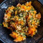 Now, grab a good-sized mixing bowl. It’s time to get everything in there! Start by adding your mashed sweet potato, then toss in the flaked salmon and the cooked white rice. Oh, and don’t forget that splash of olive oil and the chopped parsley! My dog, Buster, starts doing his happy dance the second he smells the salmon and sweet potato mixing together โ itโs ridiculously cute!