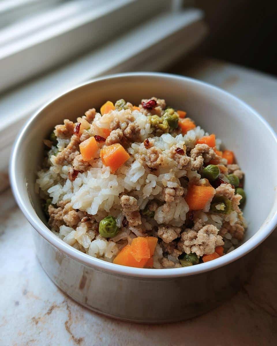 Yes, you absolutely can swap rice types! Brown rice is a fantastic alternative because it adds more natural fiber. If you choose to use brown rice instead of the white rice in this recipe, just be aware that it takes longer to cook. Youโ€™ll need to increase that simmering time in Step 2 by an extra 10 to 15 minutes so the grains have time to soften fully. You want it tender for your pupโ€™s digestion, so give it an extra stir and check it until itโ€™s soft!