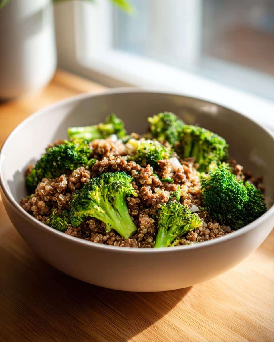 - Combine the cooked venison and broccoli mixture with the cooked quinoa in a large bowl. Mix well.