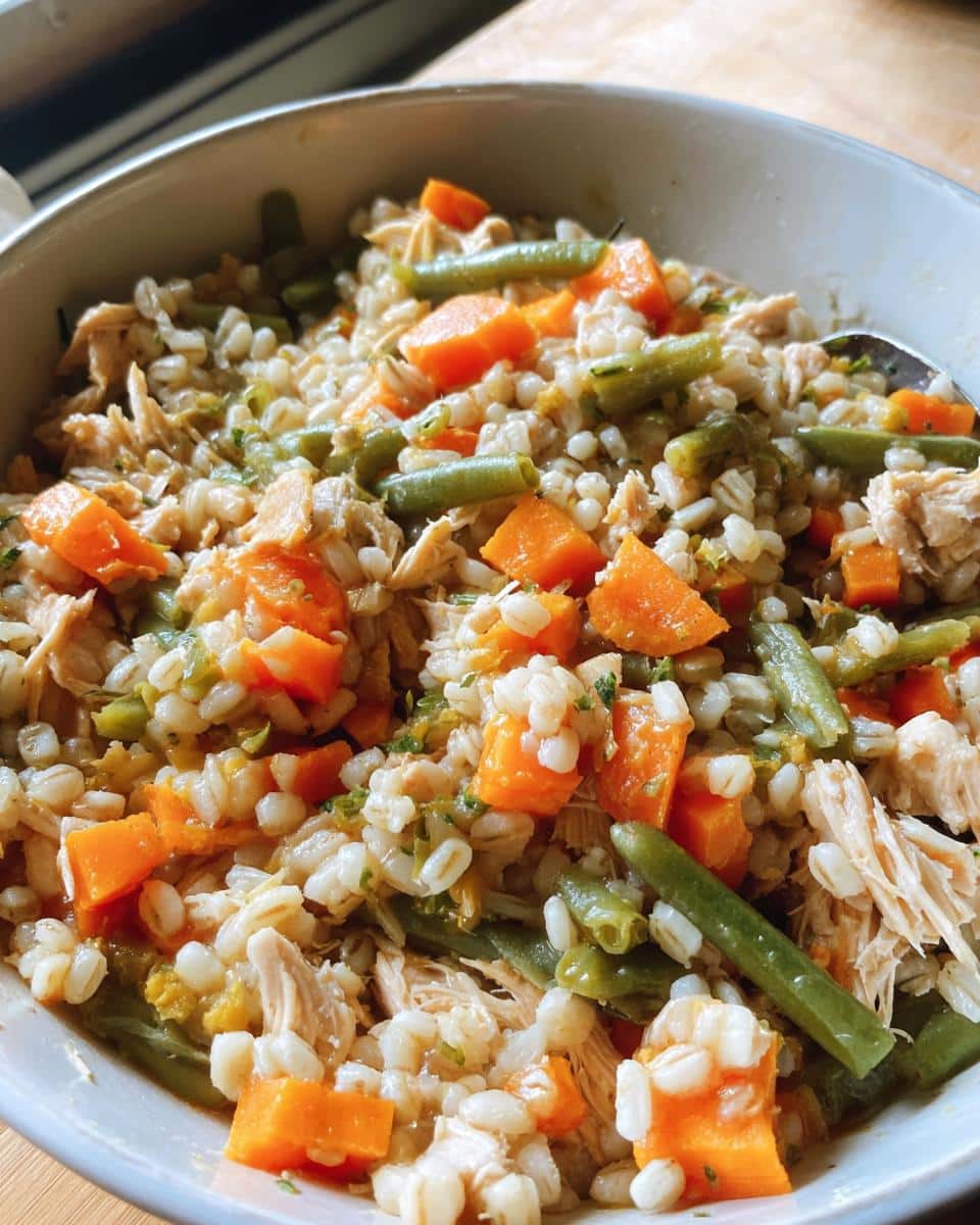 First things first: please, please make sure that chicken breast is totally boneless. Safety is number one! Also, when slicing those carrots, keep the pieces small enough so your dog can manage them easily, especially if they are smaller pups. The recipe calls for pearl barley, which is a wonderfully wholesome grain for them. Remember, we aren’t using onions or garlic hereโalways double-check that any vegetable you toss in is dog-safe. We stick to the basics: chicken, barley, carrots, and beans!